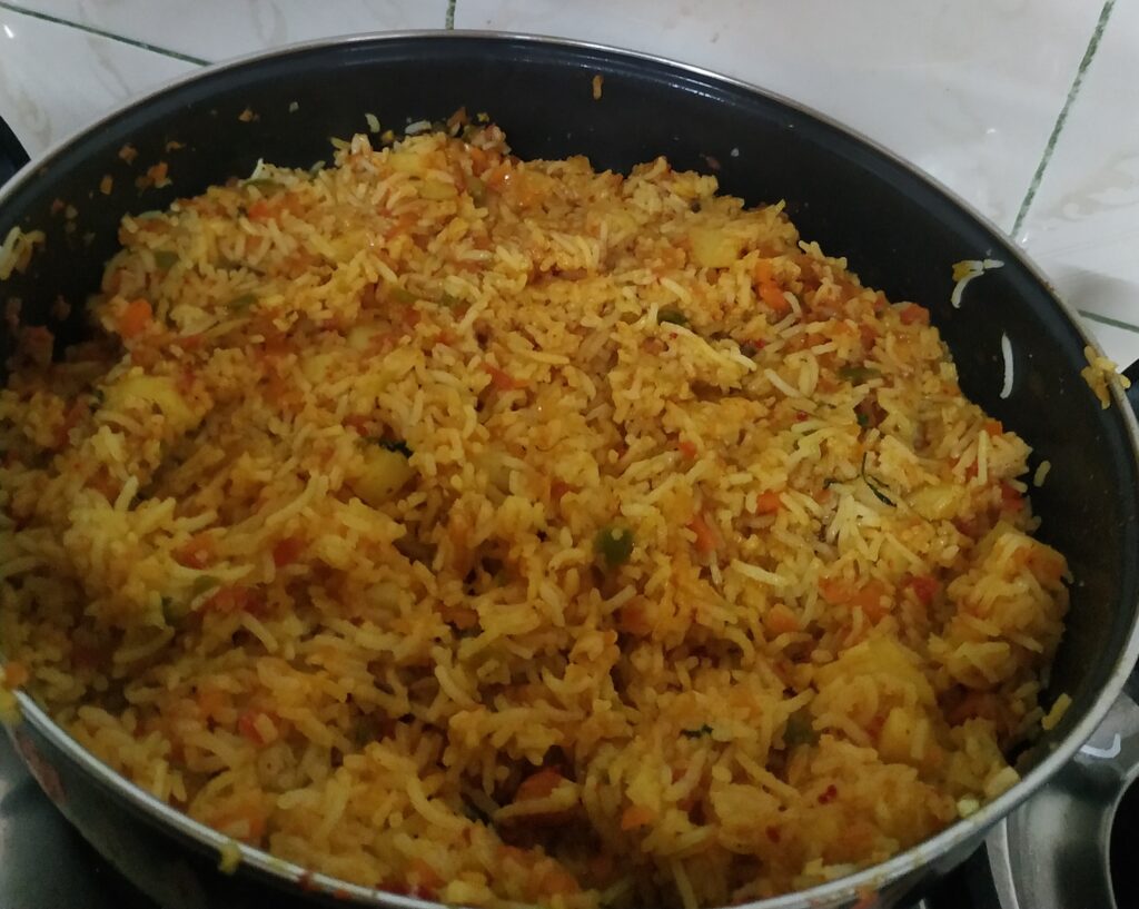 Now add the prepared rice to this mixture. Mix the entire preparation thoroughly for uniformity. Now, take this pulao in a bowl, and invert the bowl on a plate. Slowly take out the bowl. You’ll see a mound of pulao on the plate. Grate cheese on top of the mound and serve it (optionally with raita). Congratulations on preparing your delicious home-made pulao.